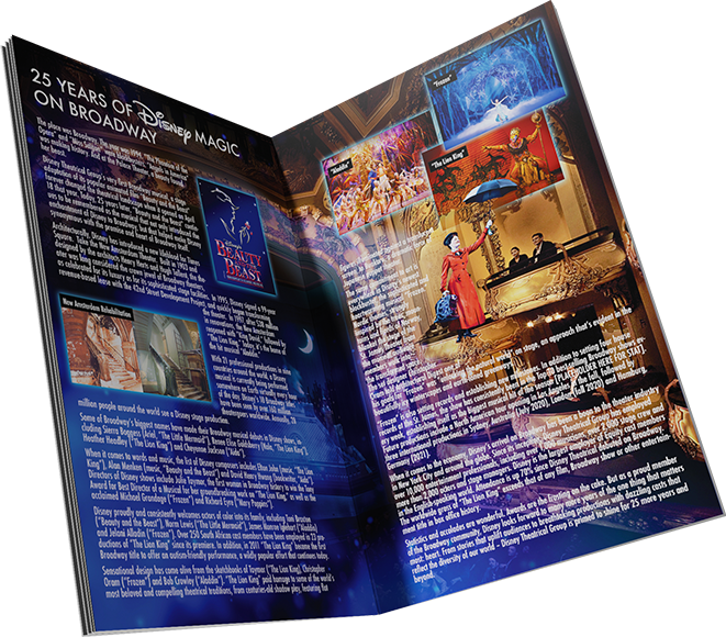 Various mocks for a Playbill spread speaking to 25 years of Disney on Broadway.